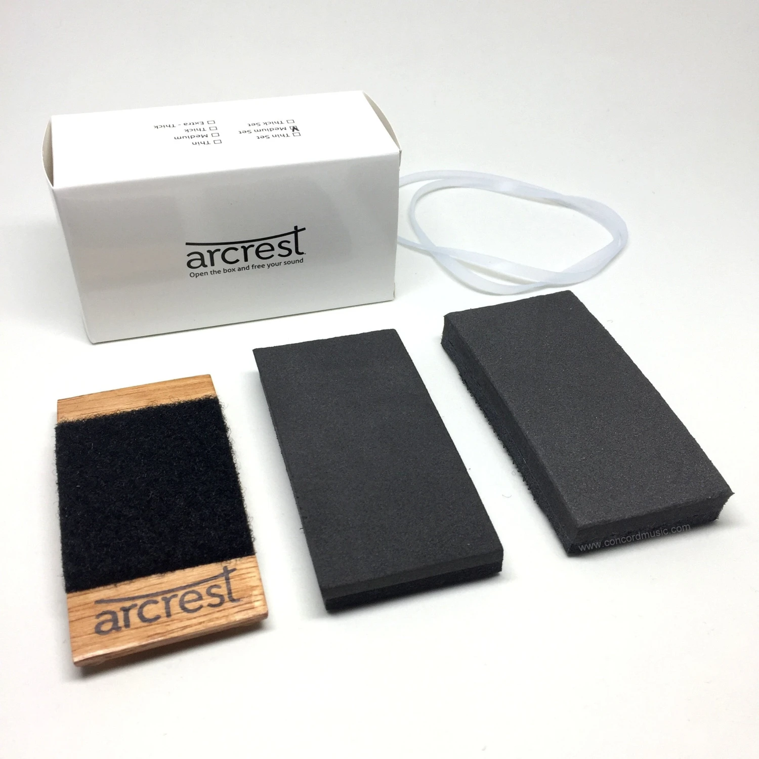 The ArcRest Medium Set* includes the middle two standard pad thicknesses, 7/16″ and 9/16″. Fits 3/4-4/4 violins & most violas under 16 inches. For large violas, check out the ArcRests for 16+