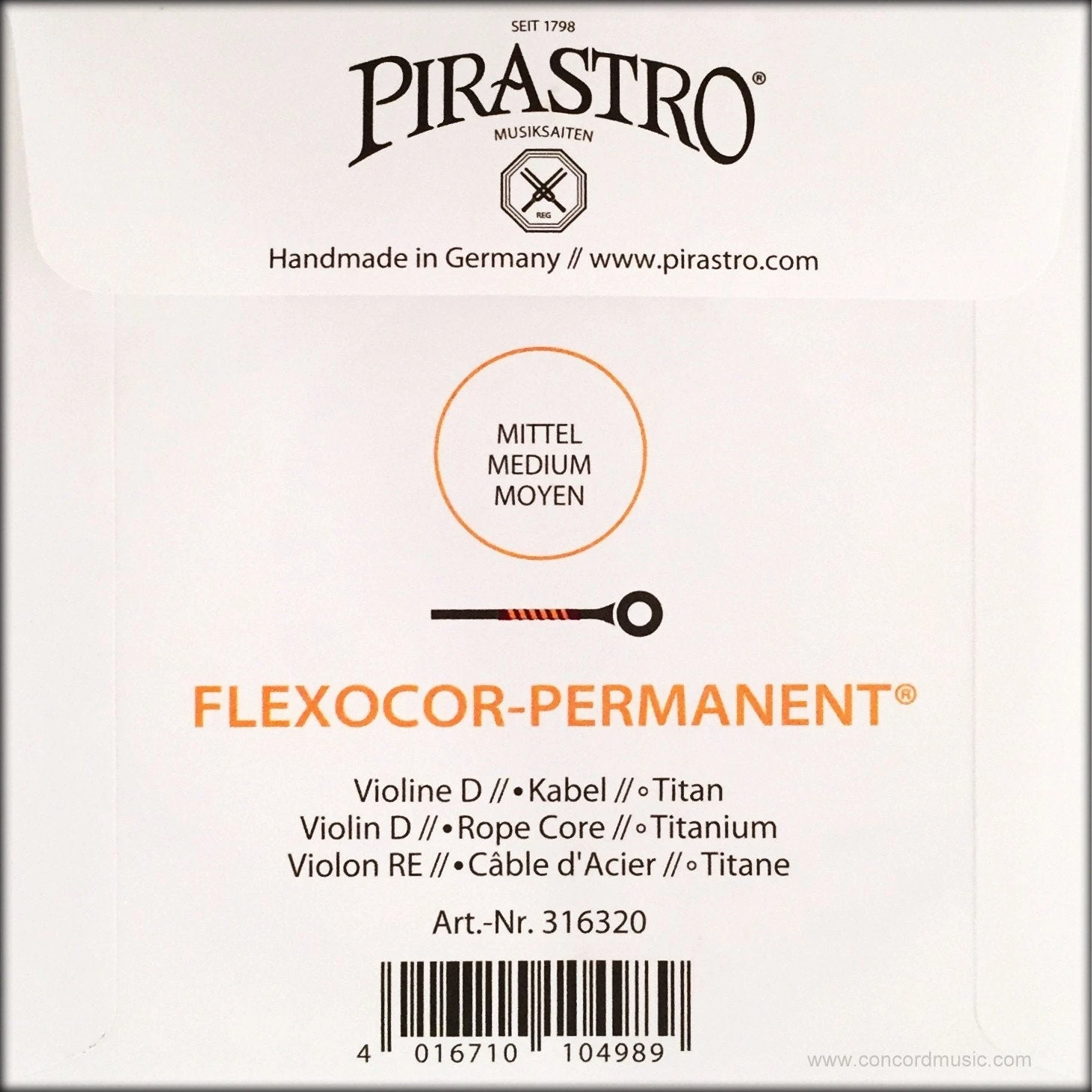 Pirastro Flexocor Permanent D Violin String, Titanium – High-Quality Violin Strings