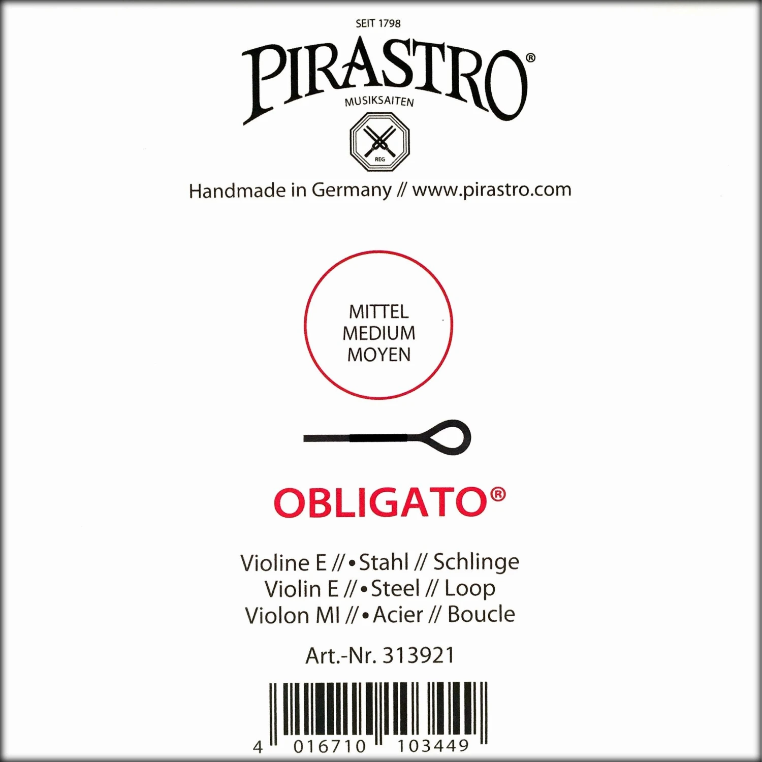 - Part of the renowned Obligato series by Pirastro, this string is engineered to provide a balanced tone with quick response and excellent projection.