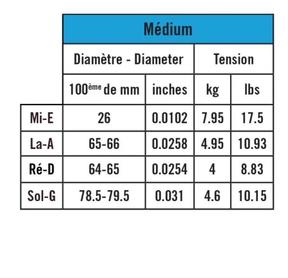 The wound A, D and G strings are made of new materials: a combination of very new innovative metals. The double layers of innovative raw materials surround a synthetic multifilament core (specific polymer) whose elasticity and density have been designed to give a rich and bright sound rendering.