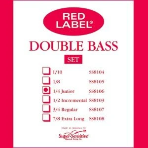 - Experience superior sound quality with the Super-Sensitive Red Label Bass String Set CLOSEOUT. These strings are designed for bass players who demand the best in performance and durability.